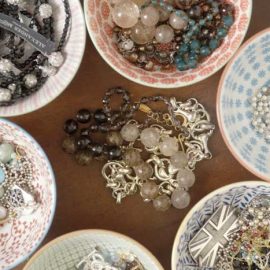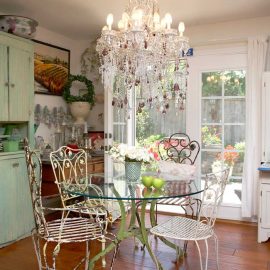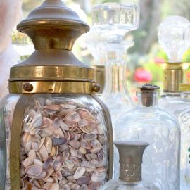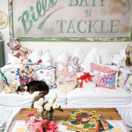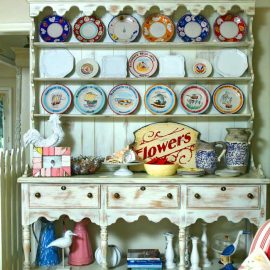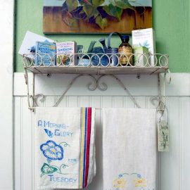 Source: This sweet vignette showcases a variety of finds. The wall color and picture set the tone and nature/gardening theme—notice the miniature watering can, flower-themed towel and the boxes of herbal remedies. Staying with a limited color palette and including items of different heights and textures keep it interesting, without being overwhelming. By Rebecca Ittner Photo by Jaimee ItagakiFresh Display Ideas for Vintage Finds