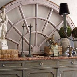 Source: Large architectural pieces can pose a quandary: you love them, but don't know what to do with them. In this room, the piece adds interest to the blank wall and sets the stage for the other objects on the marble-topped table. Old books provide a base for the statue and boosts up its height; otherwise it would be on the same level as the candle sticks. By Rebecca Ittner Photo by Corey AmoroFresh Display Ideas for Vintage Finds