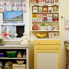 Source: Collectibles like bread boxes, kitchen tins and recipe keepers do double duty. Use them to store pantry staples, odds and ends, and more. Old furniture pieces are the perfect solution in kitchens that lack cabinet space. Adding a high shelf around the room’s perimeter lets you show off your collections in style. Grouping like items, such as the bread boxes along the top shelf and the kitchen tins above the cabinet, give the room a balanced look. By Rebecca Ittner Photo by Jaimee ItagakiFrom linens to silverware, vintage items are a wonderful way to bring a sense of history into your every day life.