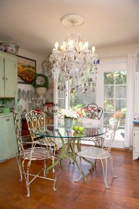 Collectibles like bread boxes, kitchen tins and recipe keepers do double duty. Use them to store pantry staples, odds and ends, and more. Old furniture pieces are the perfect solution in kitchens that lack cabinet space. Adding a high shelf around the room’s perimeter lets you show off your collections in style. Grouping like items, such as the bread boxes along the top shelf and the kitchen tins above the cabinet, give the room a balanced look. By Rebecca Ittner Photo by Jaimee Itagaki