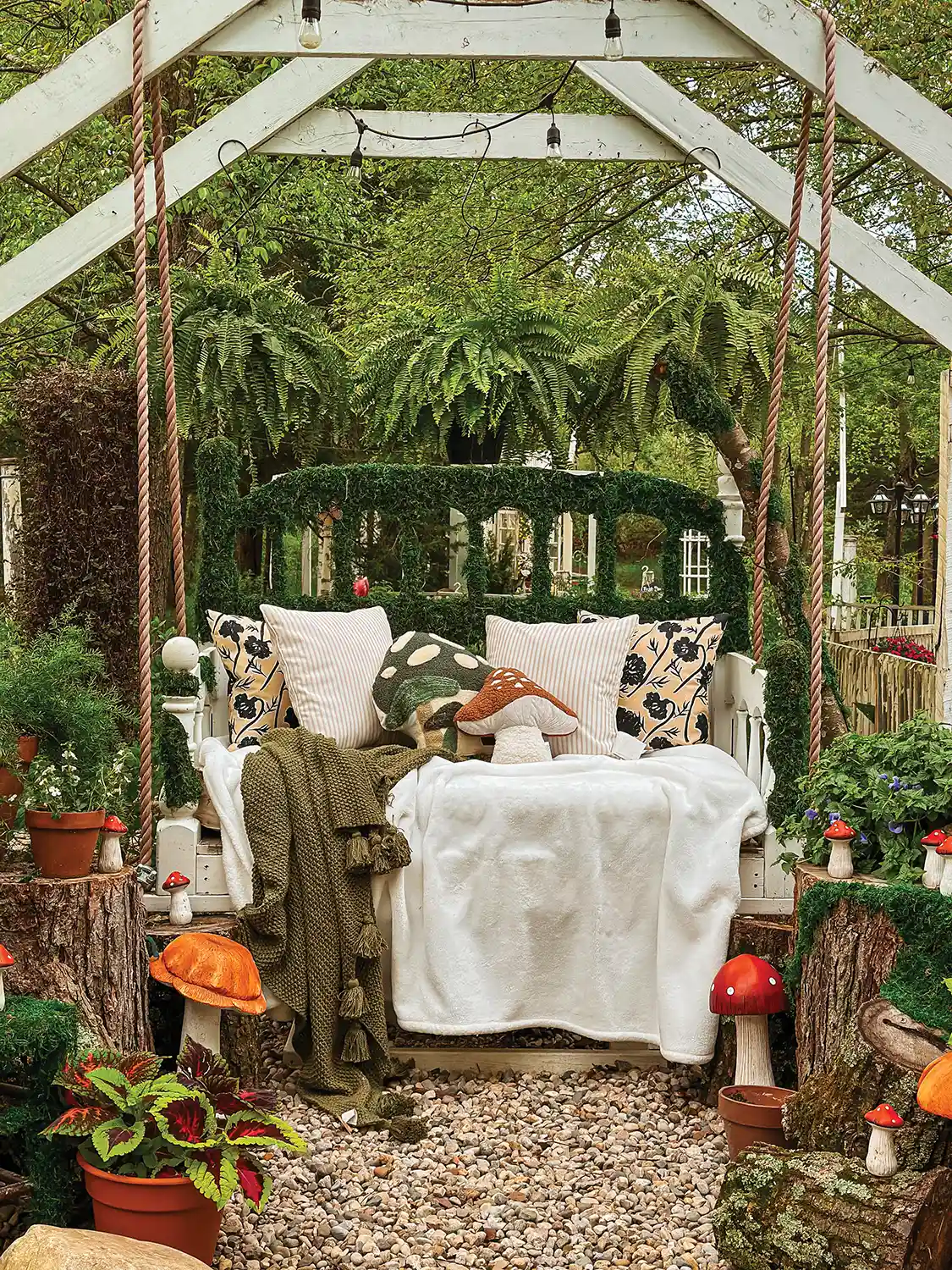 Holly Blain and husband Jamie Blain started their garden in Michigan during COVID for a place to be creative and grow. They first built a stunning pergola with a bed swing and now have three different structures with roofs! Blain states, “This garden has allowed me to be able to dive into gardening. I have areas of full sun and part sun. So, planting perennials each spring, it’s always so exciting to see how everything continues to grow and fill in.” Holly loves to host events for friends and family in the garden. Holly shares, “It’s always such a rewarding feeling to hear all the feedback when they walk down to the garden! I have a hidden ‘enchanted’ trail that leads to the garden. The kids love it and feel like they are in Alice and Wonderland.”