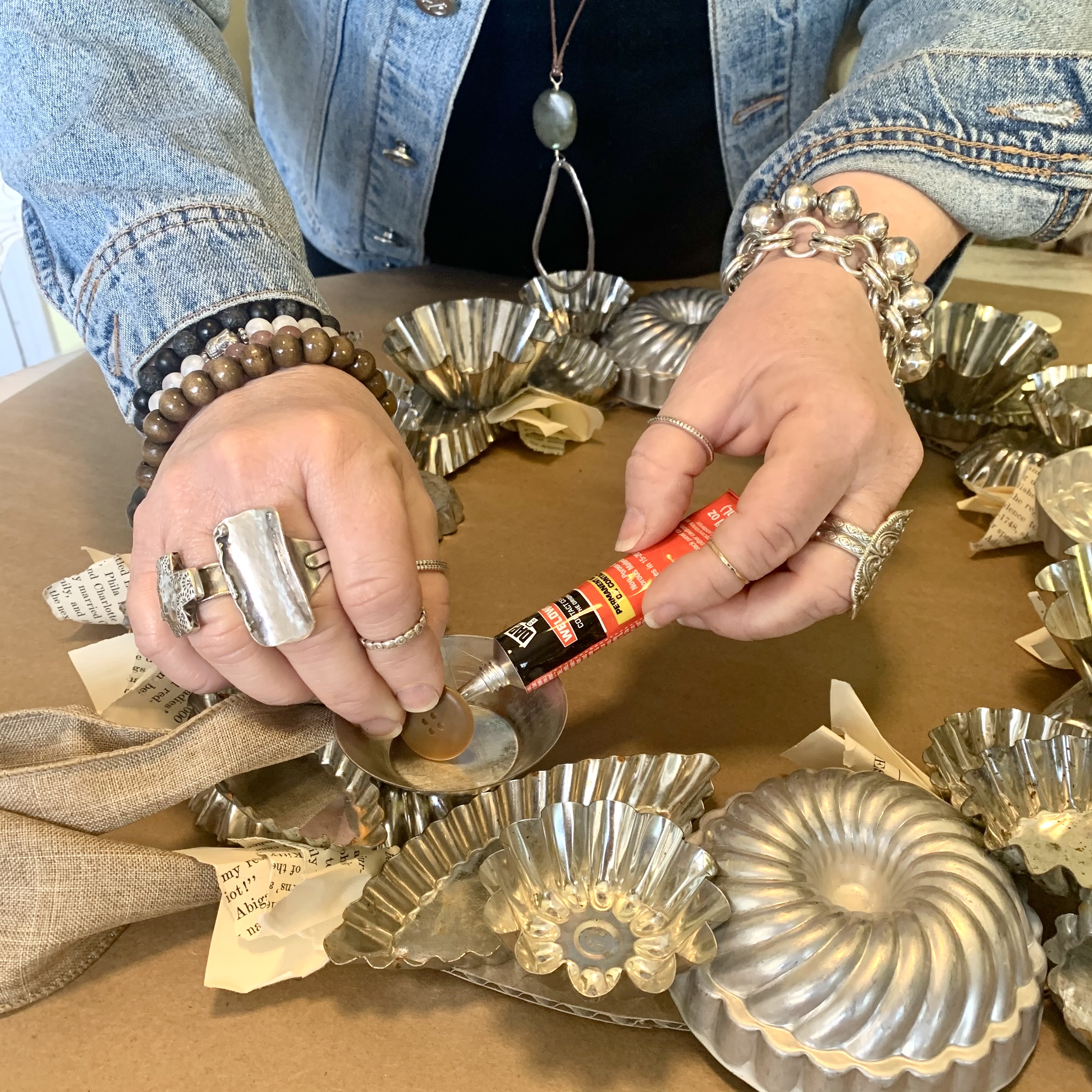 Fill in any gaps with buttons, book pages, or other small vintage touches for added