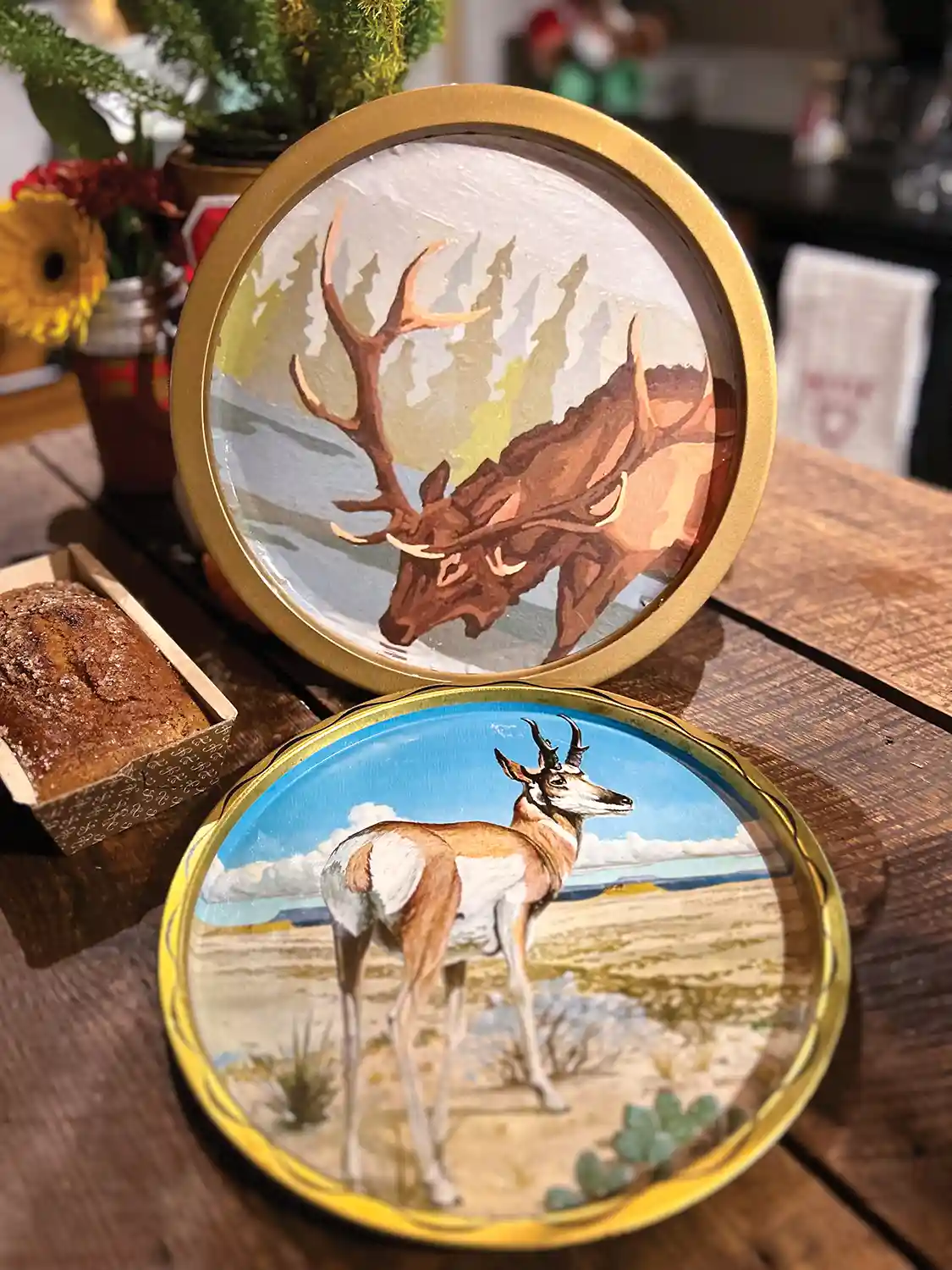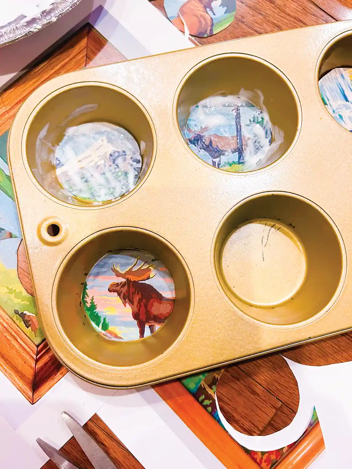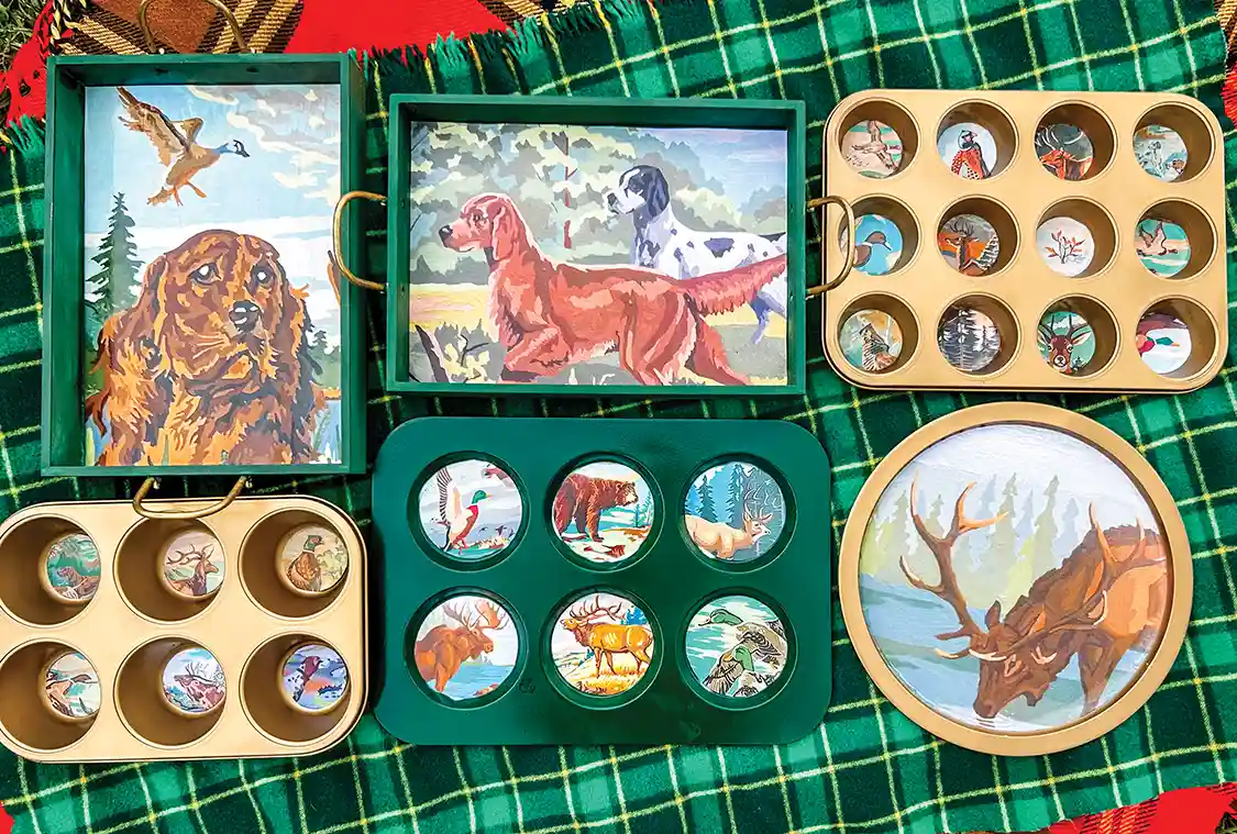 Souvenir drink trays depicting paint by number wildlife scenes are another item on my radar these days. But why not make your own paint by numbers and cut them to fit into muffin tins, trays, or any other items you have at home that need an upcycle!