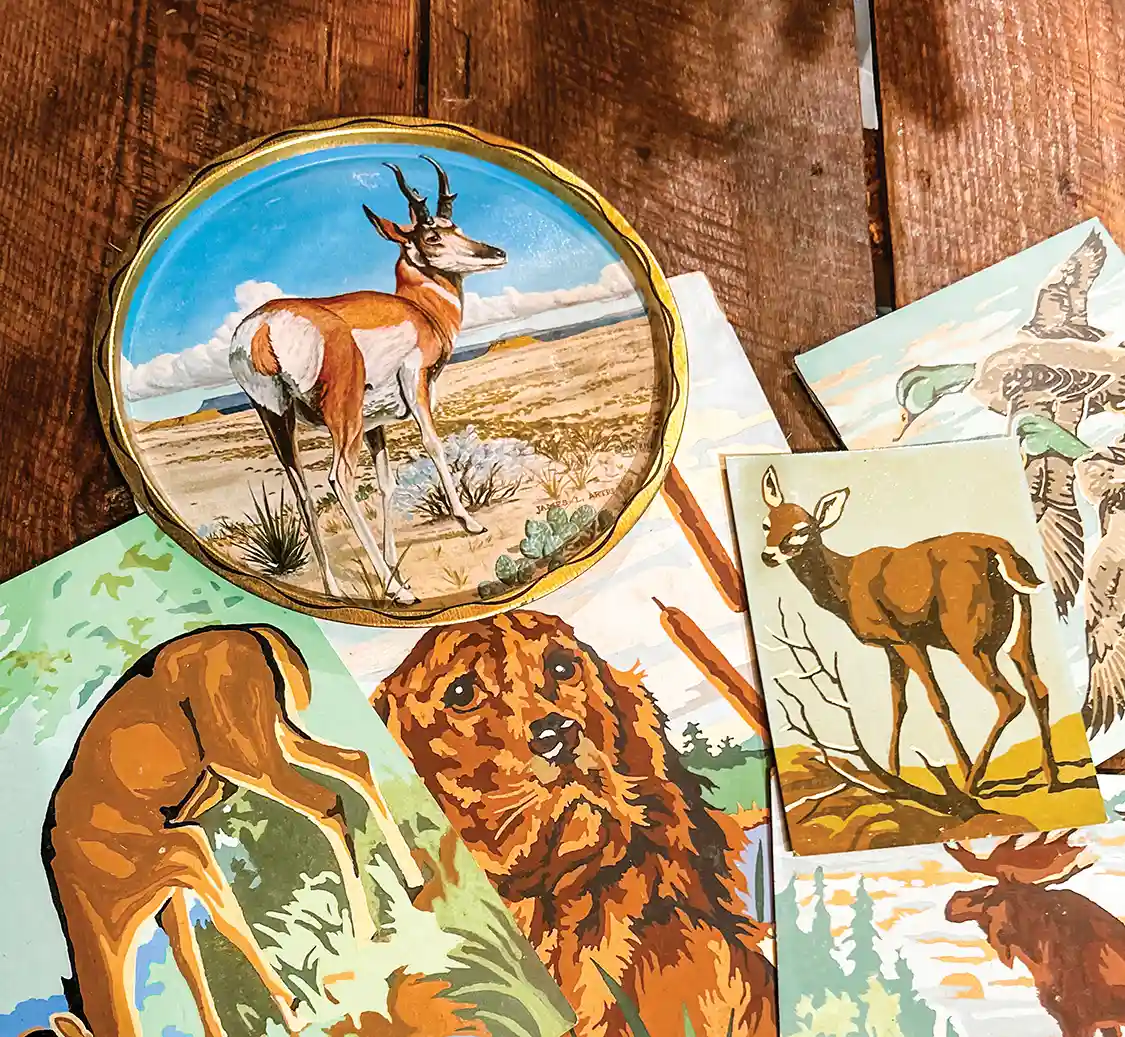 As a vintage collector, one of my favorite collections is paint by number scenes from the mid-century. I love the bright colors and find myself thinking about the kids and adults that must have been so proud to finish each one. The animals and landscape scenes are my weakness.
