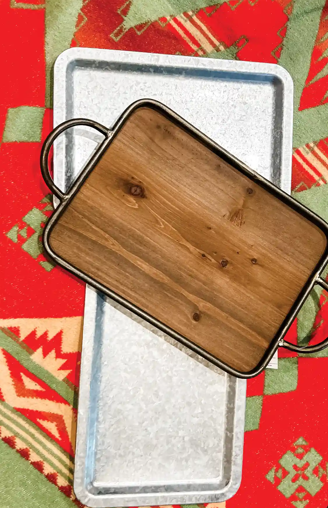 You’re almost there! I used clear spray lacquer, as mentioned previously, because I happened to have it on-hand from a previous project. When I do this again, I will use a matte spray clearcoat, so they are not quite as glossy. The lacquer is not food safe, but I plan to use these as drink trays only. I know there are types of polyacrylic topcoats that are food-safe if you let them cure according to the directions. I did two lacquer coats on the trays, allowing a day to dry between coats.