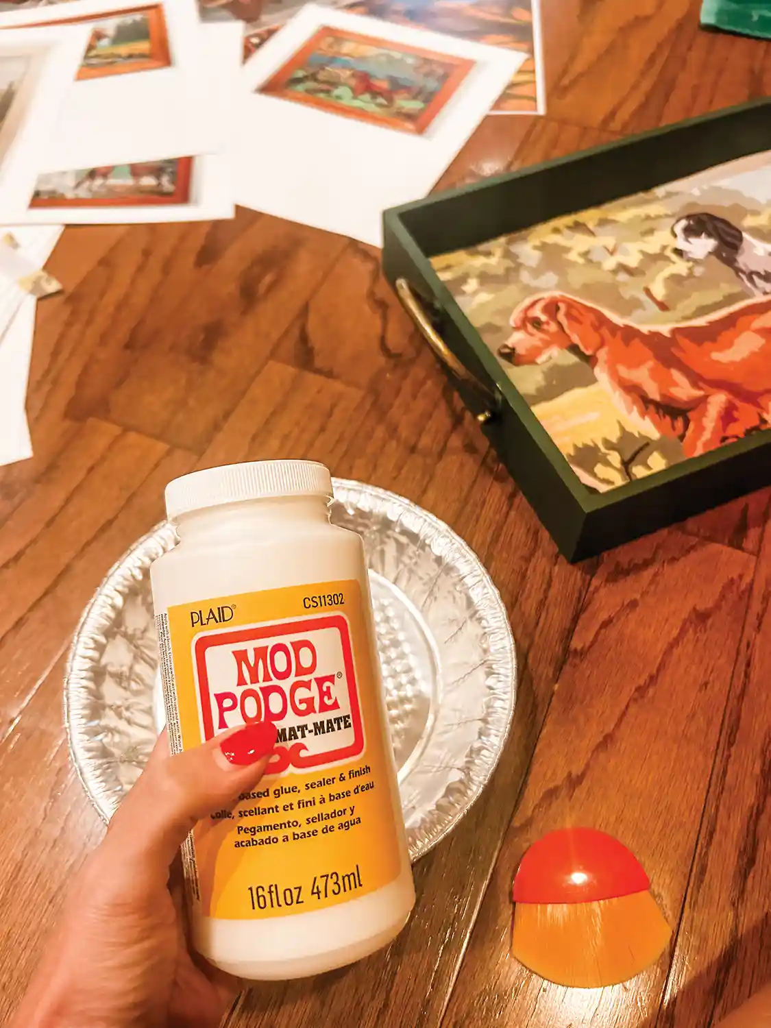 Cut the Images, Decoupage the Trays/Tins, and Place the Images