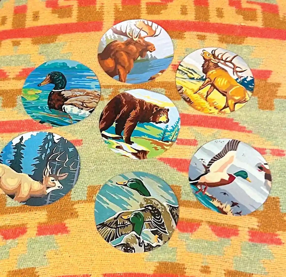 You can find inspiring print by number images online that you can print at home. I entered key phrases such as “paint by number hunting dogs” and looked for the clearest images available. Most of my images came from the Paint by Number Museum website. But you can also find them by searching: Etsy for clipart, collage downloadable, paint by number printables, etc.