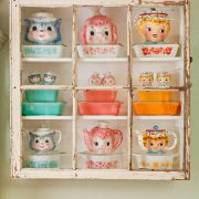 As you can see, the mood of this table is enhanced by the soft colors of all our tableware and accessories. Black and white transferware plates complement our scattered book pages, and green cabbageware plates vibe perfectly with the succulents and the soft green and white pumpkins on the table.